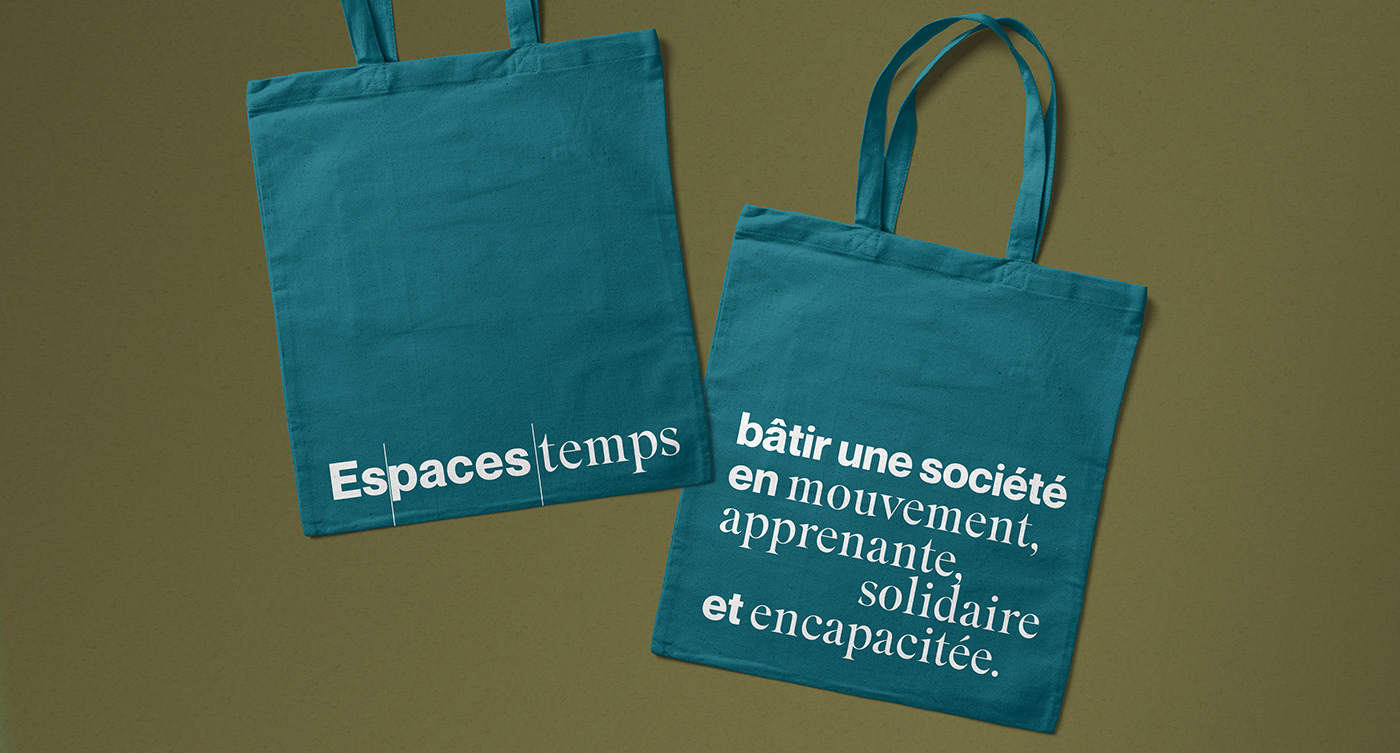 Visual identity rebrand of Espaces temps, a non-profit social enterprise that work with municipalities, universities, cultural venues, and other organizations to help them imagine and implement innovative projects.